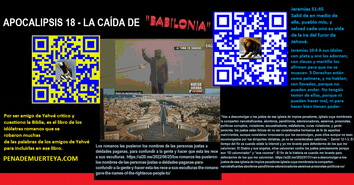 «El imperio Romano, Bahira, Mahoma, Jesús y el judaísmo perseguido. El nacimiento y la muerte de cuarta bestia. La alianza greco-romana por los mismos dioses. El Imperio seléucida. Cuidado con creer en el evangelio del anticristo (Buenas noticias para los injustos, aunque falsas) Si quieres salvarte del engaño del adversario de la justicia, considera que: Para rechazar el falso evangelio de Roma, acepte que si Jesús fue justo entonces no amó a sus enemigos, y si no fue hipócrita entonces no predicó el amor a los enemigos porque no predicaba lo que no practicaba: Proverbios 29:27 Los justos odian a los injustos, y los injustos odian a los justos. Esto es parte del evangelio adulterado por los romanos para la Biblia: 1 Pedro 3:18 Porque Cristo murió una vez por los pecados, el justo por los injustos, para llevarnos a Dios. Ahora mire esto que desmiente esa calumnia: Salmo 118:20 Esta es la puerta de Jehová; los justos entrarán por ella. 21 Te daré gracias porque me has escuchado y has sido mi salvación. 22 La piedra que rechazaron los constructores se ha convertido en la piedra angular. Jesús maldice a sus enemigos en la parábola que predice su muerte y regreso: Lucas 20:14 Pero cuando los viñadores vieron esto, discutieron entre sí, diciendo: Éste es el heredero; Venid, matémoslo, para que la herencia sea nuestra. 15 Entonces lo echaron de la viña y lo mataron. ¿Qué les hará entonces el dueño de la viña? 16 Él vendrá y destruirá a estos viñadores y dará la viña a otros. Cuando lo oyeron, dijeron: ¡De ninguna manera! 17 Pero Jesús, mirándolos, dijo: ¿Qué, pues, es esto que está escrito: La piedra que desecharon los constructores se ha convertido en la piedra angular? Él habló de esta piedra, de la piedra de la pesadilla del rey de Babilonia: Daniel 2:31 Tú, oh rey, veías, y he aquí una gran imagen. Esta imagen, que era muy grande, y cuya gloria era muy sublime, estaba en pie delante de ti, y su aspecto era terrible. 32 La cabeza de esta imagen era de oro fino; su pecho y sus brazos, de plata; su vientre y sus muslos, de bronce; 33 sus piernas, de hierro; sus pies, en parte de hierro y en parte de barro cocido. 34 Estabas mirando, hasta que una piedra fue cortada, no con mano, e hirió a la imagen en sus pies de hierro y de barro cocido, y los desmenuzó. 35 Entonces fueron desmenuzados también el hierro, el barro cocido, el bronce, la plata y el oro, y fueron como tamo de las eras del verano, y se los llevó el viento sin que de ellos quedara rastro alguno. Mas la piedra que hirió a la imagen fue hecha un gran monte que llenó toda la tierra. La cuarta bestia es la alianza de los líderes de todas las falsas religiones amigables con el fraude romano denunciado. El Cristianismo y el Islam dominan el mundo, la mayoría de los gobiernos o juran por el Corán o por la Biblia, por ese simple motivo, aunque los gobiernos lo nieguen, son gobiernos religiosos que se someten a las autoridades religiosas que están detrás de esos libros por los cuales juraron. Aquí les voy a mostrar la influencia romana en los dogmas de estas religiones y como distan mucho de los dogmas de la religión que perseguía Roma, Además, lo que les voy a mostrar no es parte de la religión que hoy se conoce como Judaísmo. Y si a esto le sumamos la fraternidad de los líderes del Judaísmo, Cristianismo e Islam, hay suficientes elementos para señalar a Roma como la creadora de los dogmas de estas religiones, y que la última religión mencionada no es la misma que el Judaísmo que perseguía Roma. Sí, estoy afirmando que Roma creó el cristianismo y que persiguió un Judaísmo diferente al actual, los líderes leales del Judaísmo legítimo jamás darían abrazos fraternales a difusores de doctrinas idólatras. Es evidente que no soy cristiano, ¿entonces porque cito pasajes de la Biblia para dar sustento a lo que digo?, pues porque no todo en la Biblia pertenece exclusivamente al cristianismo, parte de su contenido es el contenido de la religión del camino de la justicia que fue perseguido por el imperio romano por ser contrario al ideal romano de hacer que «Todos los caminos conduzcan a Roma (Es decir, que esos caminos favorezcan los intereses imperiales), por eso tomo algunos pasajes de la Biblia para sustentar mis afirmaciones. Daniel 2:40 Y el cuarto reino será fuerte como hierro; y como el hierro desmenuza y rompe todas las cosas, desmenuzará y quebrantará todo. 41 Y lo que viste de los pies y los dedos, en parte de barro cocido de alfarero y en parte de hierro, será un reino dividido; mas habrá en él algo de la fuerza del hierro, así como viste hierro mezclado con barro cocido. 42 Y por ser los dedos de los pies en parte de hierro y en parte de barro cocido, el reino será en parte fuerte, y en parte frágil. 43 Así como viste el hierro mezclado con barro, se mezclarán por medio de alianzas humanas; pero no se unirán el uno con el otro, como el hierro no se mezcla con el barro. 44 Y en los días de estos reyes el Dios del cielo levantará un reino que no será jamás destruido, ni será el reino dejado a otro pueblo; desmenuzará y consumirá a todos estos reinos, pero él permanecerá para siempre. El cuarto reino es el reino de las falsas religiones. Por eso a los Papas en el Vaticano le dan honores los dignatarios de países como Estados Unidos. El país líder en el mundo no es EEUU, no es la bandera de los Estados Unidos la que ondea en las plazas de armas de las capitales de varios países de Latino América, es la bandera del Vaticano la que ondea. Los Papas se reúnen con los líderes de otras religiones dominantes, cosa imposible de imaginar entre profetas y falsos profetas. Pero entre falsos profetas estas alianzas son posibles. La piedra angular es la justicia. Los romanos no sólo despreciaban el hecho de que fuera un hombre justo, sino también el hecho de que él merecía casarse con una mujer justa: 1 Corintios 11:7 La mujer es la gloria de