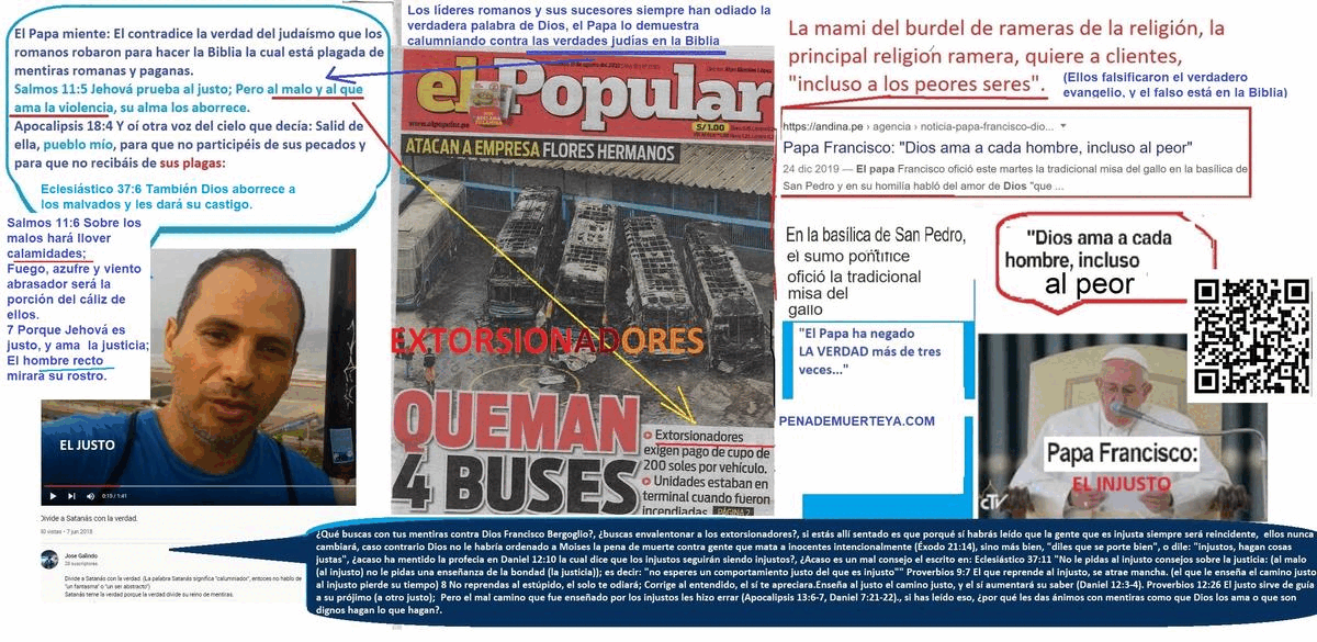 «¿Quién es responsable de la maldad, «»Satanás»» o la persona que comete la maldad? No te dejes engañar por justificaciones estúpidas porque «»el Diablo»» al que culpan de sus propias malas acciones en realidad son ellos mismos. La típica excusa de la persona religiosa perversa: «»Yo no soy así porque no soy yo quien hace este mal, sino el Diablo que me ha poseído quien hace este mal.»» Los romanos, actuando como «»Satanás»», crearon contenido que también hicieron pasar por leyes de Moisés, contenido injusto para desacreditar el contenido justo: La Biblia no solo contiene verdades, también contiene mentiras. Satanás es un ser de carne y hueso porque significa: el calumniador. Los romanos calumniaron a Pablo atribuyéndole la autoría del mensaje de Efesios 6:12. La lucha es contra carne y sangre. Números 35:33 menciona la pena de muerte contra carne y sangre, los ángeles enviados por Dios a Sodoma destruyeron carne y sangre, y no «»huestes espirituales de maldad en las regiones celestiales.»» Mateo 23:15 dice que los fariseos convierten a sus seguidores en personas aún más corruptas que ellos, sugiriendo que alguien puede volverse injusto por influencia externa. En cambio, Daniel 12:10 dice que los injustos seguirán actuando con injusticia porque es su naturaleza, y solo los justos comprenderán el camino de la justicia. La falta de armonía entre estos dos mensajes muestra que algunas partes de la Biblia entran en contradicción, lo que pone en duda su veracidad absoluta. https://naodanxxii.wordpress.com/wp-content/uploads/2025/03/idi01-the-plot.pdf .» «El imperio Romano, Bahira, Mahoma, Jesús y el judaísmo perseguido. El nacimiento y la muerte de cuarta bestia. La alianza greco-romana por los mismos dioses. El Imperio seléucida. Cuidado con creer en el evangelio del anticristo (Buenas noticias para los injustos, aunque falsas) Si quieres salvarte del engaño del adversario de la justicia, considera que: Para rechazar el falso evangelio de Roma, acepte que si Jesús fue justo entonces no amó a sus enemigos, y si no fue hipócrita entonces no predicó el amor a los enemigos porque no predicaba lo que no practicaba: Proverbios 29:27 Los justos odian a los injustos, y los injustos odian a los justos. Esto es parte del evangelio adulterado por los romanos para la Biblia: 1 Pedro 3:18 Porque Cristo murió una vez por los pecados, el justo por los injustos, para llevarnos a Dios. Ahora mire esto que desmiente esa calumnia: Salmo 118:20 Esta es la puerta de Jehová; los justos entrarán por ella. 21 Te daré gracias porque me has escuchado y has sido mi salvación. 22 La piedra que rechazaron los constructores se ha convertido en la piedra angular. Jesús maldice a sus enemigos en la parábola que predice su muerte y regreso: Lucas 20:14 Pero cuando los viñadores vieron esto, discutieron entre sí, diciendo: Éste es el heredero; Venid, matémoslo, para que la herencia sea nuestra. 15 Entonces lo echaron de la viña y lo mataron. ¿Qué les hará entonces el dueño de la viña? 16 Él vendrá y destruirá a estos viñadores y dará la viña a otros. Cuando lo oyeron, dijeron: ¡De ninguna manera! 17 Pero Jesús, mirándolos, dijo: ¿Qué, pues, es esto que está escrito: La piedra que desecharon los constructores se ha convertido en la piedra angular? Él habló de esta piedra, de la piedra de la pesadilla del rey de Babilonia: Daniel 2:31 Tú, oh rey, veías, y he aquí una gran imagen. Esta imagen, que era muy grande, y cuya gloria era muy sublime, estaba en pie delante de ti, y su aspecto era terrible. 32 La cabeza de esta imagen era de oro fino; su pecho y sus brazos, de plata; su vientre y sus muslos, de bronce; 33 sus piernas, de hierro; sus pies, en parte de hierro y en parte de barro cocido. 34 Estabas mirando, hasta que una piedra fue cortada, no con mano, e hirió a la imagen en sus pies de hierro y de barro cocido, y los desmenuzó. 35 Entonces fueron desmenuzados también el hierro, el barro cocido, el bronce, la plata y el oro, y fueron como tamo de las eras del verano, y se los llevó el viento sin que de ellos quedara rastro alguno. Mas la piedra que hirió a la imagen fue hecha un gran monte que llenó toda la tierra. La cuarta bestia es la alianza de los líderes de todas las falsas religiones amigables con el fraude romano denunciado. El Cristianismo y el Islam dominan el mundo, la mayoría de los gobiernos o juran por el Corán o por la Biblia, por ese simple motivo, aunque los gobiernos lo nieguen, son gobiernos religiosos que se someten a las autoridades religiosas que están detrás de esos libros por los cuales juraron. Aquí les voy a mostrar la influencia romana en los dogmas de estas religiones y como distan mucho de los dogmas de la religión que perseguía Roma, Además, lo que les voy a mostrar no es parte de la religión que hoy se conoce como Judaísmo. Y si a esto le sumamos la fraternidad de los líderes del Judaísmo, Cristianismo e Islam, hay suficientes elementos para señalar a Roma como la creadora de los dogmas de estas religiones, y que la última religión mencionada no es la misma que el Judaísmo que perseguía Roma. Sí, estoy afirmando que Roma creó el cristianismo y que persiguió un Judaísmo diferente al actual, los líderes leales del Judaísmo legítimo jamás darían abrazos fraternales a difusores de doctrinas idólatras. Es evidente que no soy cristiano, ¿entonces porque cito pasajes de la Biblia para dar sustento a lo que digo?, pues porque no todo en la Biblia pertenece exclusivamente al cristianismo, parte de su contenido es el contenido de la religión del camino de la justicia que fue perseguido por el imperio romano por ser contrario al ideal romano de hacer que «Todos los caminos conduzcan a Roma (Es decir, que esos caminos favorezcan los intereses imperiales), por eso tomo algunos pasajes de la Biblia para sustentar mis afirmaciones. Daniel 2:40 Y el cuarto reino será fuerte como hier
