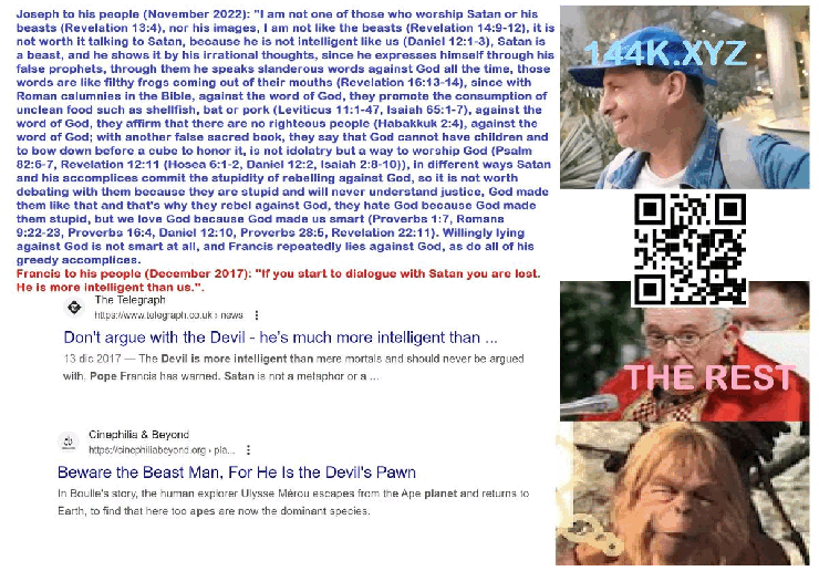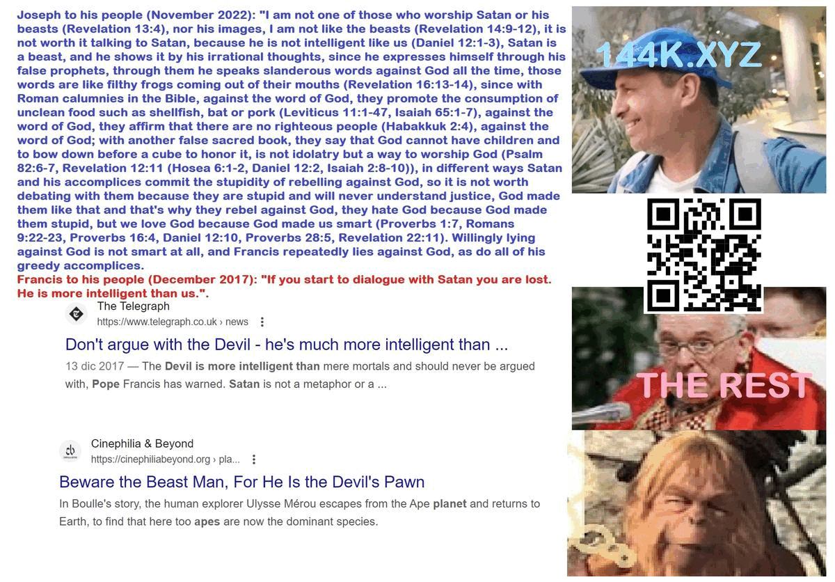 The serpent, the devil, or Satan (the slanderer) in hell (Isaiah 66:24, Mark 9:44). Matthew 25:41: “Then he will also say to those on his left: ‘Depart from me, you cursed, into the eternal fire that has been prepared for the devil and his angels’.” Hell: the eternal fire prepared for the serpent and his angels (Revelation 12:7-12), for having combined truths with heresies in the Bible, the Quran, the Torah, and for having created false forbidden gospels that they called apocryphal, to give credibility to lies in the false sacred books, all in rebellion against justice.