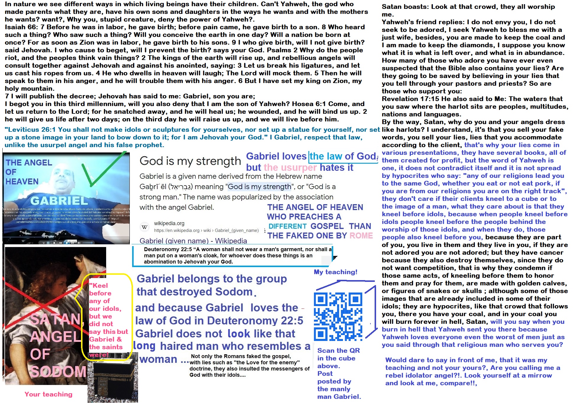 1 Corinthians 11:14 A man with hair like a woman is a disgrace. Therefore, you are not Gabriel,