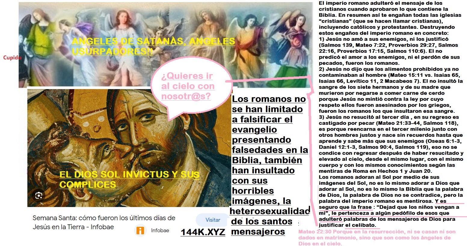 Las falsas acusaciones romanas en su Biblia. Este mensaje: «Porque en la resurrección, ni se casan ni son dados en matrimonio, sino que son como los ángeles de Dios en el cielo.» y este mensaje: » En cuanto a las cosas de que me escribisteis, bueno le sería al hombre no tocar mujer», son calumnias de los romanos.