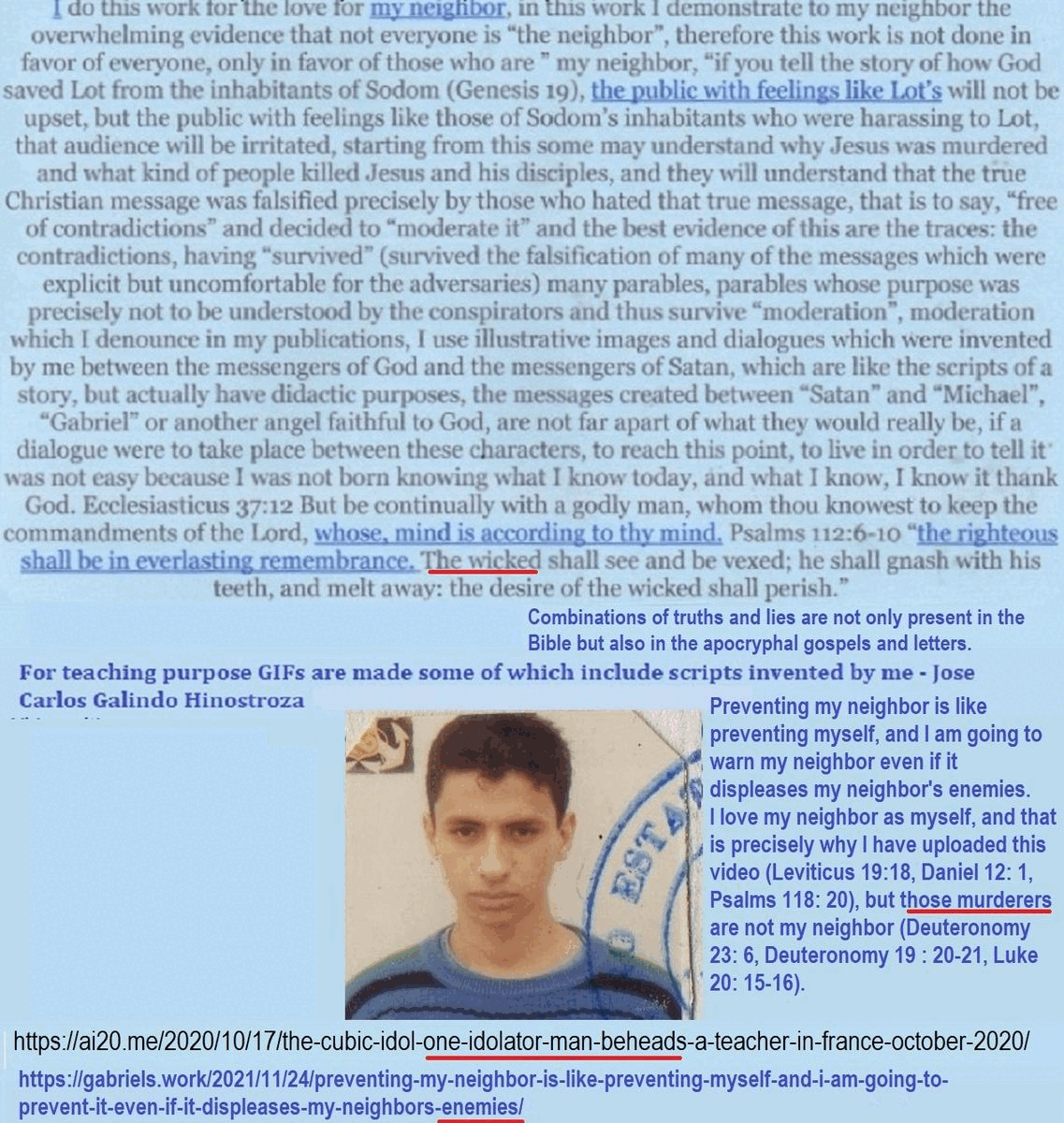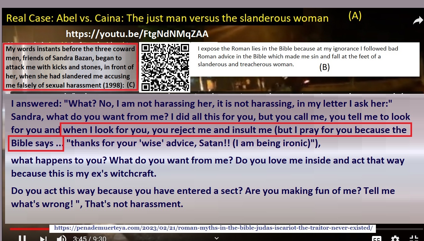 In 1997, for the first time in my life, I read a very different version of the ten commandments, different from the version that I was taught at school. I read that version in Exodus 20, and it was particularly the message in Exodus 20:5 that provoked that I stopped being Catholic, however the Bible has so many messages, you cannot read the entire Bible in a few days, I was just beginning to understand that the Catholic Church contradicted the Bible in many aspects, but what I did not begin to understand was that the Bible also had lies, I heard people say that the Protestant Bible was different from the Catholic Bible, but I read both and found them sharing the same message in Exodus 20:5. Being very indignant, I protested on my own against the Catholic clergy for having taught me idolatry. My immediate family lived in the United States and I lived in Lima. We are talking about 1997. The Internet was not what it is today, which is why I made photocopies of page of Exodus 20 and I sent letters to my relatives with those copies showing that they had deceived us, I imagined that they would also leave Catholicism, but that did not happen and I was very surprised, I did not have the opportunity to read more pages of the Bible because I was harassed by my family who behaved very hostile towards me because I criticized the faith that I previously shared with them, they did not help me to stop the telephone incident that I suffered and that came from a woman who was preparing slander and an ambush against me, all this harassment did not even allow me to sleep well at night (this was due to the constant calls from that woman, calls to which my paternal relatives (my father’s sister, my grandmother, cousins, etc.) .), they acted with strange complacency, my aunt Lupe, the owner of the telephone line, she refused to request the record of the incoming calls to the telephone service provider company, calls in which the person calling, and she did so almost 24 hours a day, almost daily , and every hour or 20 – 30 minutes, and this during some 5 months, she only hung up when she heard my voice, but not before making noises with the keys on the phone, a pattern of harassment that a former classmate named Sandra Elizabeth already had, she did that for about 15 days, at the end of 1995 or in the first half of 1996 (I no longer remember the date well), when I lived in my maternal grandmother’s house, on that occasion she confessed to having been the one who called after a of those calls, in which the caller doesn’t speak, but only made noise with the keys and I asked: «Who is this? Say who are you, damn?»!! and that person hung up and a few seconds later, he called again, and I say «again» that person because when I answered the phone what I heard was this: «Hello José, who am I?», I told him «You’re Sandra», to which she responded: «You already know who I am,» but I did not ask her why she called, because I took it as sexual harassment and I already have a girlfriend named Mónica Nieves to whom I She was faithful, and Sandra Elizabeth knew that perfectly well because I had told her. I suspect that she did the harassment in 1997, after I and she had contact again and saw each other following my greeting for her 23rd birthday, in July. of 1997, the occasion in which I gave him the telephone number of the house where I had moved, I no longer lived in La Victoria (Lima- Peru), in 1997 I already lived in El Rímac, (another district of Lima, capital of Peru) , I believe that this harassment, and the slander was due to spite because I ignored her in those days of 1996; and I was confused because I knew that she knew that I knew that she was the one who was calling me, the problem arises that she had managed to make me see her as the good one and my ex Monica as the bad one, it happens that despite that I was faithful to Mónica, Mónica from the date she saw Sandra Elizabeth’s name in a group work document, on the cover of that document there were the names of two women and two men, because in my group there were four of us. , Mónica did not study at the same school as me and she did not know Sandra or anyone from my institute, despite that, Mónica became obsessed with Sandra’s name, she could have told me: «Who is Leslie? Surely You like her and that’s why you were late today», because Leslie was also on the list of names, but no, she became obsessed with Sandra, imagining that I was interested in Sandra, and every time we met she mentioned her to me, doubting me. , to the point of finding out, through the white pages, her exact address, and it seems she went there too because she gave me her exact physical description, and telling me that she was going to torture her with muriatic acid, gouge out her eyes and kill her, I took those threats seriously, and then I was disappointed in Mónica, and I idealized Sandra, especially because Mónica never let me study even though she told me that she was going to marry me, every time I wanted to go home early to study, she told me » I need you every moment, you are like the blood in my veins, you are like the air I breathe», or «I’m sure you’re going to see Sandra, that fetus», and that’s why I was late getting home (haggard , for obvious reasons, if the walls of the hostel could talk…), I arrived late, skinny because I didn’t have dinner due to lack of time, tired, without energy to study. I had a knack for algorithms (I studied computer programming at IDAT), but for courses like Statistics, I needed time, time to practice, but I didn’t give it time, that’s why one day I got a 04 grade, I had failed, It was Monday and I told Monica: «Monica, I have to go home at 8 pm, I need to study statistics because on Saturday there will be a make-up exam», she kept me: from Tuesday to Friday it was the same, Friday at 11 pm, I was sad and resigned to failing the Saturday Exam, the next day, at 7 AM, Sandra Elizabeth called me, 
