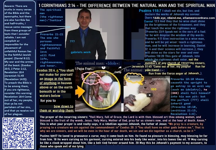 I made the mistake of defending the faith in the Bible, but out of ignorance. However, now I see that it is not the guiding book of the religion that Rome persecuted, but of the one it created to please itself with celibacy. That’s why they preached a Christ who doesn’t marry a woman, but rather His church, and angels who, despite having male names, do not look like men (draw your own conclusions). These figures are akin to the false saints—plaster-statue kissers—and similar to the Greco-Roman gods because, in fact, they are the same pagan gods under different names.