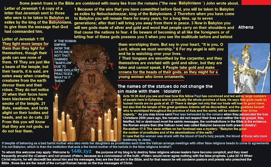 Dear my friends, the Roman empire never converted to the religion they have persecuted, they have hellenized it!. So the current christians leaders are not the remnat of those saints killed by the Romans, come one! Wake up, watch the news, they blame of their wicked deeds to abstract beings called «The Devil» or «The spirit of Satan», that is absurd, they are the persecutors tail, and the roman persecutors were called the Devil because they were the false witnesses against the saints, Satan means slanderer, the empire of Rome (now the Vatican) was called Babylon by the saints because of idolatry that in both cities reigned, and still do reign.