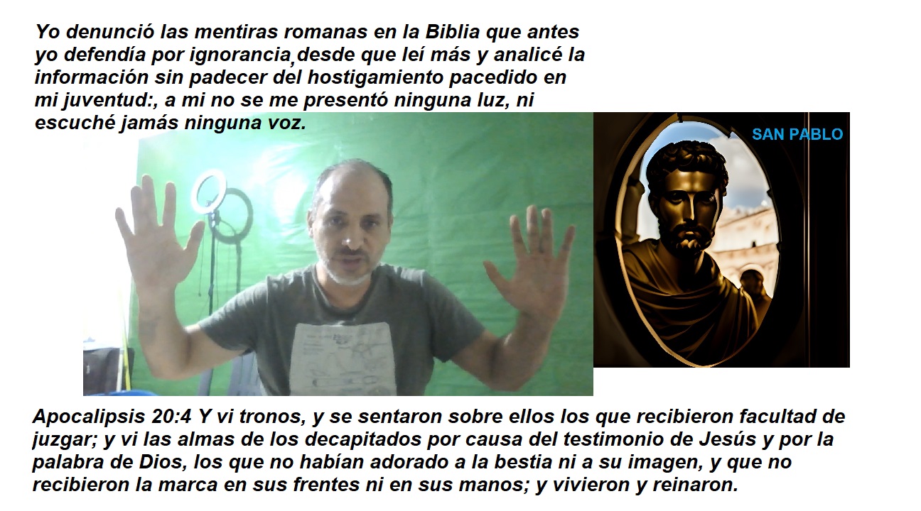Por lo expuesto, estoy seguro que si San Pablo reencarnado estuviese entre nosotros, el desmentiría como yo lo hago, esa calumnia y otras de los romanos, y no solo lo haría Pablo, sino todos los demás santos y el propio Jesús.