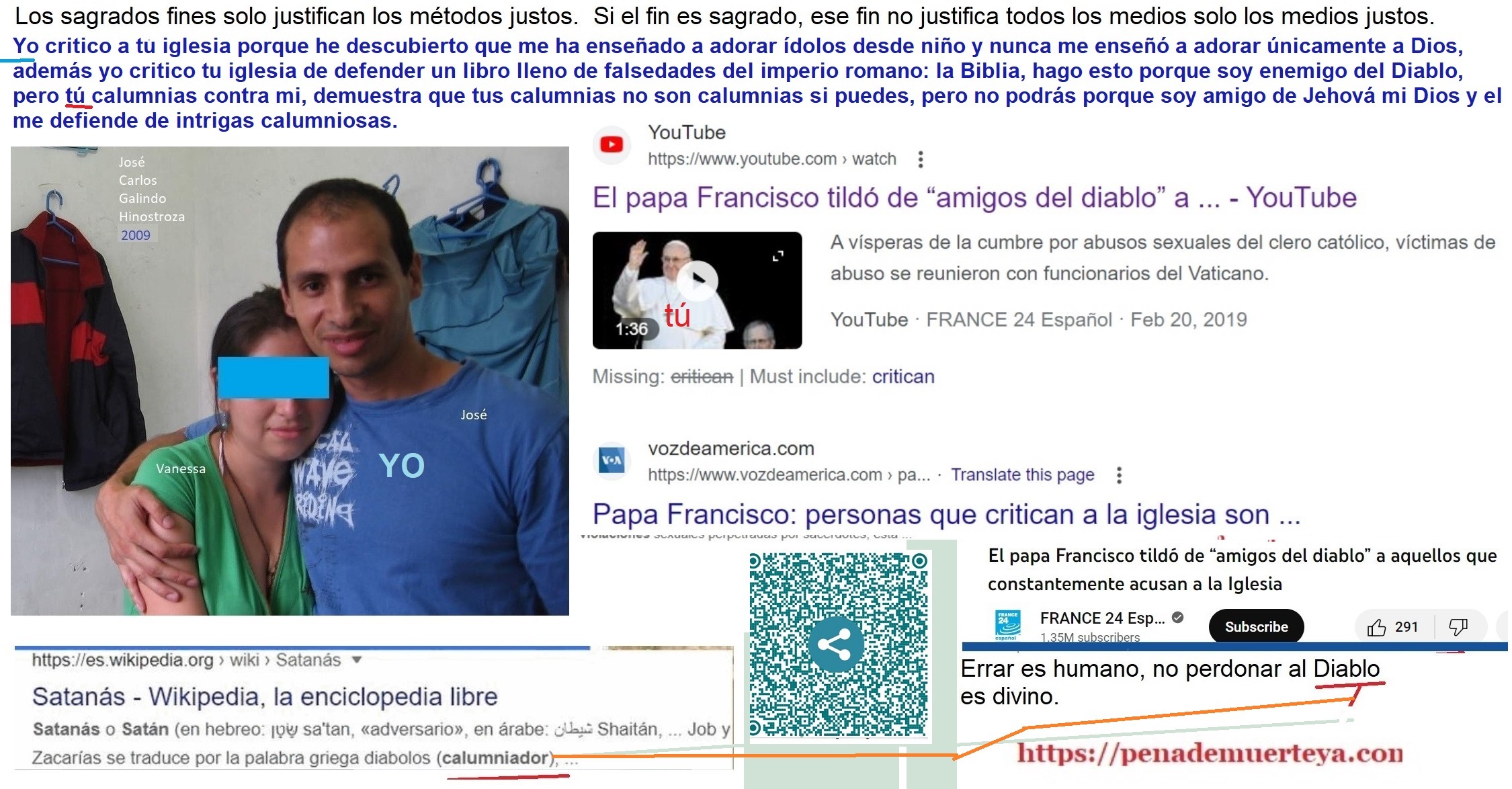 No creas que cuando digo la palabra Satanás yo me refiera a un energia invisible, Satanás significa calumniador, y cuando Satanás pecó contra Dios lo hizo en cuerpos de carne y hueso, por lo tanto cuando veas a un calumniador, cuando sepas que una persona es dada por levantar falsas acusaciones, ese es Satanás, Satanás actúa en los hijos de Satanás, en la imagen abajo verás a Satanás hablando contra Dios palabras mentirosas:
