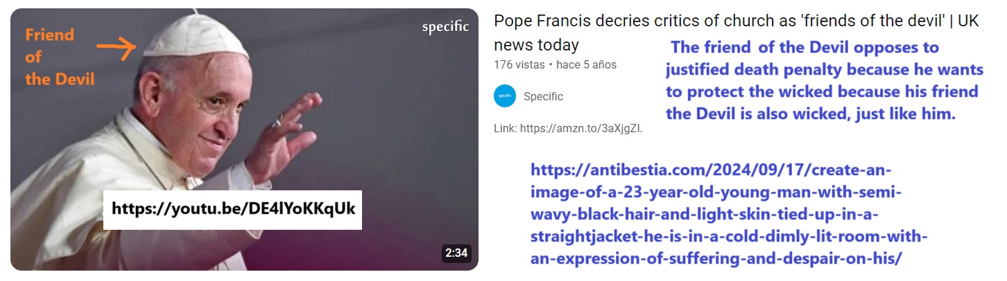 Si de mi dependiese yo condenaría a muerte a todo violador sexual, sea que se trate de un religioso, o no. Pero argumentos en películas como «El exorcista», con cuyas escenas hice el GIF abajo, buscan victimizar a esos monstruos como si fuesen «víctimas del Diablo», también buscan santificarlos, como si ellos lucharan contra la mentira contra Dios, cuando por el contrario, ellos difunden engaños contra Dios, se dicen estar poseídos temporalmente por el Diablo en los momentos que hacen maldad, como si ellos hubiesen actuado así no por ser ellos así, sino por haber sido poseídos por ese ser abstracto, intangible según ellos, un ser que ellos dicen que vive en el éter (las regiones celestes), porque según su Biblia, ellos no tienen lucha contra carne ni sangre, sino con un ser, que por ser abstracto, no puede ser juzgado ni condenado, ni arrestado.