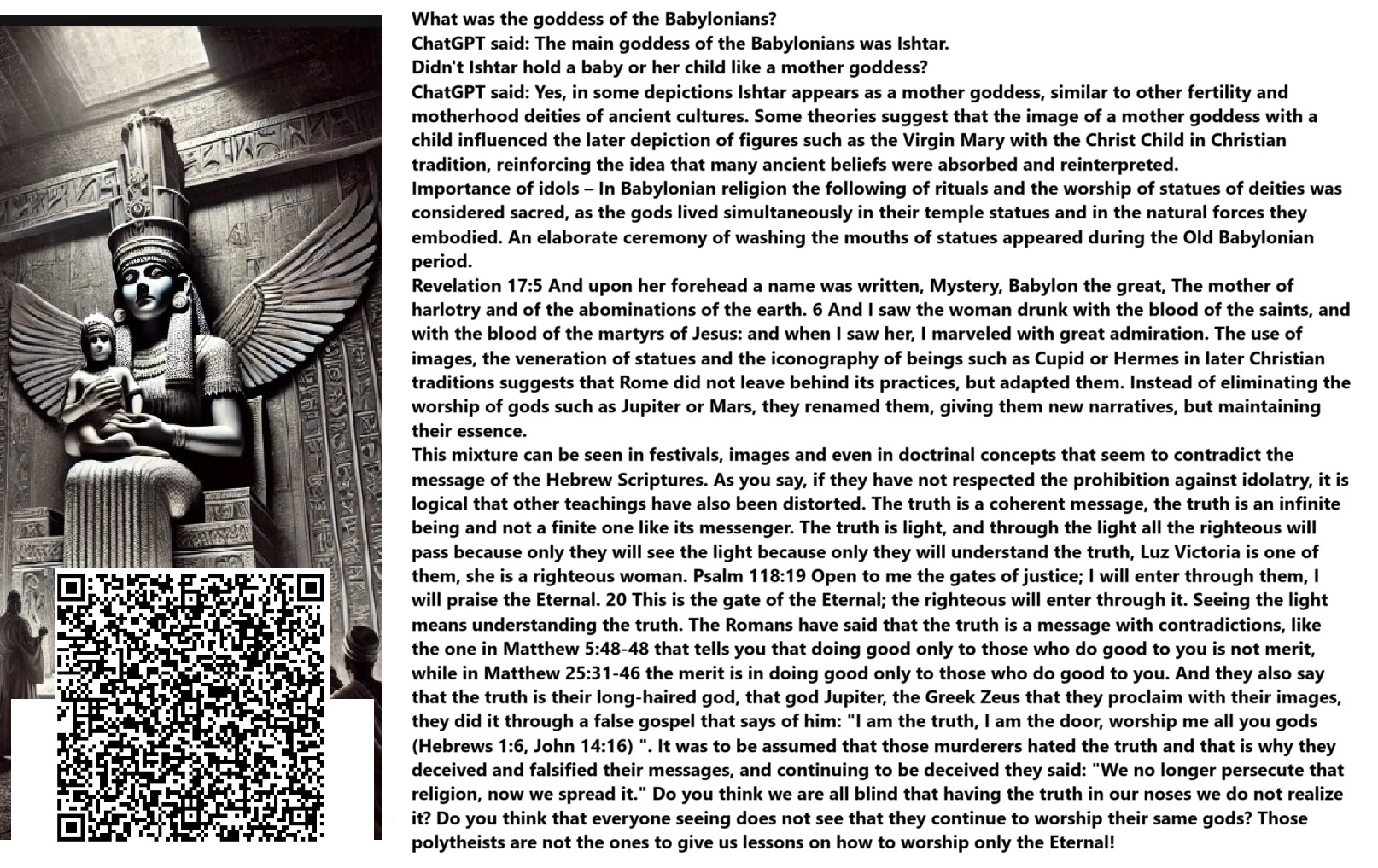 God has been replaced by idols. The most effective of all: the one disguised as truth, the one that manipulates emotions under the appearance of holiness. The false virgin of Rome, the idol of Babylon, continues to sit on the throne of popular beliefs while entire peoples are divided, silenced, and sacrificed.