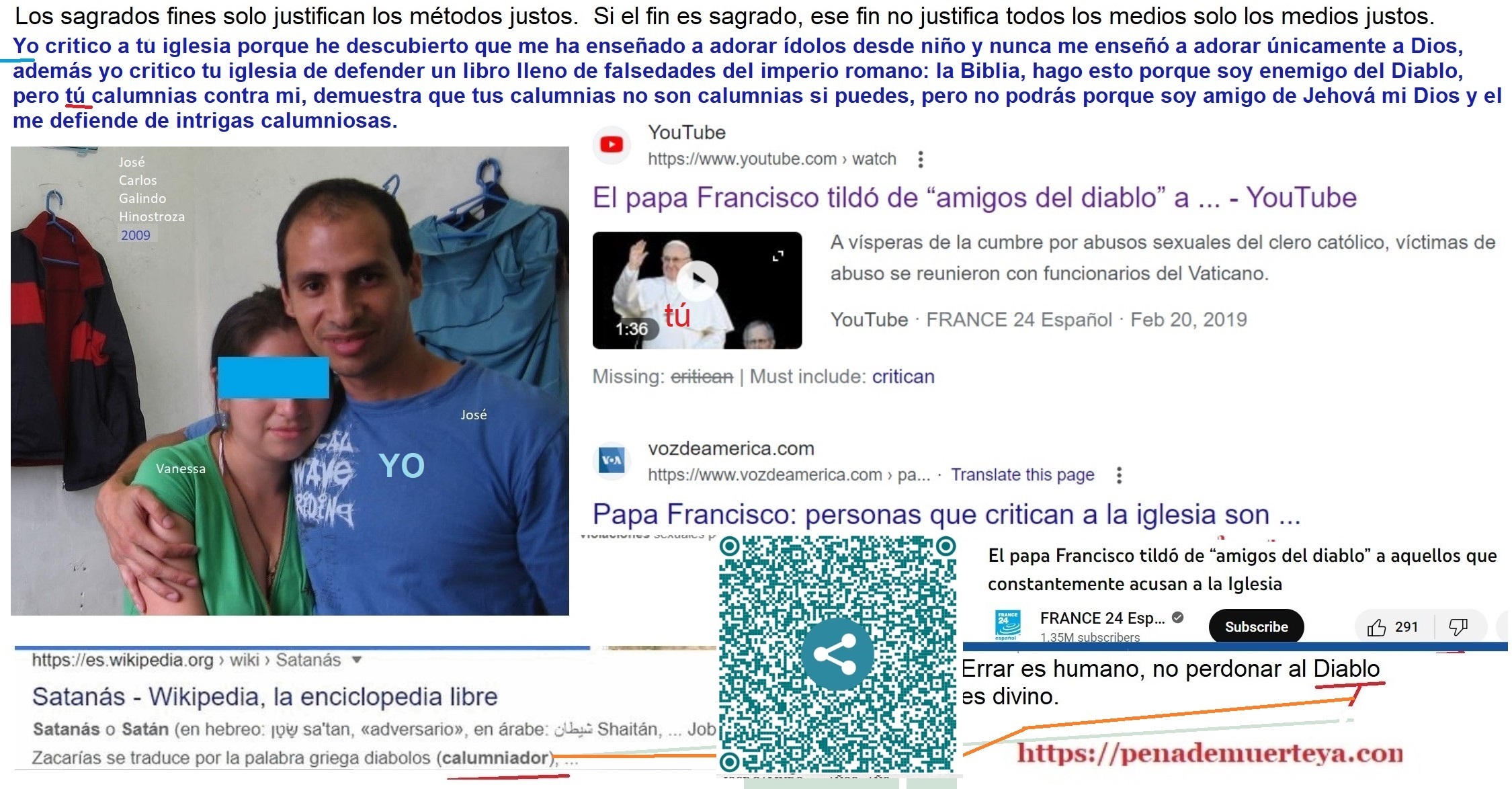 Y cuando algún crítico de la iglesia propone la pena de muerte contra ellos, dicen “Los que nos critican son amigos del Diablo, la pena de muerte es pecado”.