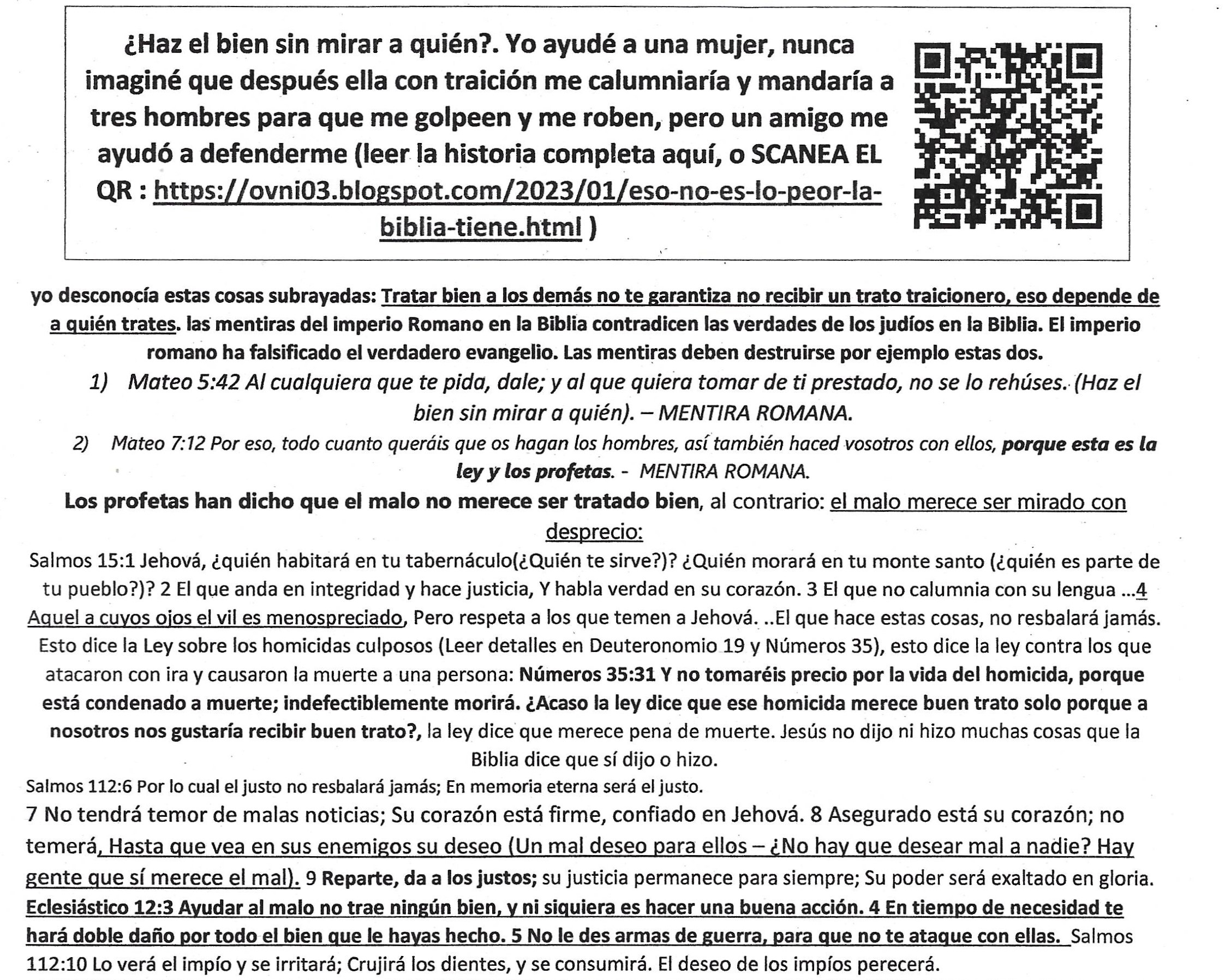 «¿Quién es responsable de la maldad, «»Satanás»» o la persona que comete la maldad? No te dejes engañar por justificaciones estúpidas porque «»el Diablo»» al que culpan de sus propias malas acciones en realidad son ellos mismos. La típica excusa de la persona religiosa perversa: «»Yo no soy así porque no soy yo quien hace este mal, sino el Diablo que me ha poseído quien hace este mal.»» Los romanos, actuando como «»Satanás»», crearon contenido que también hicieron pasar por leyes de Moisés, contenido injusto para desacreditar el contenido justo: La Biblia no solo contiene verdades, también contiene mentiras. Satanás es un ser de carne y hueso porque significa: el calumniador. Los romanos calumniaron a Pablo atribuyéndole la autoría del mensaje de Efesios 6:12. La lucha es contra carne y sangre. Números 35:33 menciona la pena de muerte contra carne y sangre, los ángeles enviados por Dios a Sodoma destruyeron carne y sangre, y no «»huestes espirituales de maldad en las regiones celestiales.»» Mateo 23:15 dice que los fariseos convierten a sus seguidores en personas aún más corruptas que ellos, sugiriendo que alguien puede volverse injusto por influencia externa. En cambio, Daniel 12:10 dice que los injustos seguirán actuando con injusticia porque es su naturaleza, y solo los justos comprenderán el camino de la justicia. La falta de armonía entre estos dos mensajes muestra que algunas partes de la Biblia entran en contradicción, lo que pone en duda su veracidad absoluta. https://naodanxxii.wordpress.com/wp-content/uploads/2025/03/idi01-the-plot.pdf .» «El imperio Romano, Bahira, Mahoma, Jesús y el judaísmo perseguido. El nacimiento y la muerte de cuarta bestia. La alianza greco-romana por los mismos dioses. El Imperio seléucida. Cuidado con creer en el evangelio del anticristo (Buenas noticias para los injustos, aunque falsas) Si quieres salvarte del engaño del adversario de la justicia, considera que: Para rechazar el falso evangelio de Roma, acepte que si Jesús fue justo entonces no amó a sus enemigos, y si no fue hipócrita entonces no predicó el amor a los enemigos porque no predicaba lo que no practicaba: Proverbios 29:27 Los justos odian a los injustos, y los injustos odian a los justos. Esto es parte del evangelio adulterado por los romanos para la Biblia: 1 Pedro 3:18 Porque Cristo murió una vez por los pecados, el justo por los injustos, para llevarnos a Dios. Ahora mire esto que desmiente esa calumnia: Salmo 118:20 Esta es la puerta de Jehová; los justos entrarán por ella. 21 Te daré gracias porque me has escuchado y has sido mi salvación. 22 La piedra que rechazaron los constructores se ha convertido en la piedra angular. Jesús maldice a sus enemigos en la parábola que predice su muerte y regreso: Lucas 20:14 Pero cuando los viñadores vieron esto, discutieron entre sí, diciendo: Éste es el heredero; Venid, matémoslo, para que la herencia sea nuestra. 15 Entonces lo echaron de la viña y lo mataron. ¿Qué les hará entonces el dueño de la viña? 16 Él vendrá y destruirá a estos viñadores y dará la viña a otros. Cuando lo oyeron, dijeron: ¡De ninguna manera! 17 Pero Jesús, mirándolos, dijo: ¿Qué, pues, es esto que está escrito: La piedra que desecharon los constructores se ha convertido en la piedra angular? Él habló de esta piedra, de la piedra de la pesadilla del rey de Babilonia: Daniel 2:31 Tú, oh rey, veías, y he aquí una gran imagen. Esta imagen, que era muy grande, y cuya gloria era muy sublime, estaba en pie delante de ti, y su aspecto era terrible. 32 La cabeza de esta imagen era de oro fino; su pecho y sus brazos, de plata; su vientre y sus muslos, de bronce; 33 sus piernas, de hierro; sus pies, en parte de hierro y en parte de barro cocido. 34 Estabas mirando, hasta que una piedra fue cortada, no con mano, e hirió a la imagen en sus pies de hierro y de barro cocido, y los desmenuzó. 35 Entonces fueron desmenuzados también el hierro, el barro cocido, el bronce, la plata y el oro, y fueron como tamo de las eras del verano, y se los llevó el viento sin que de ellos quedara rastro alguno. Mas la piedra que hirió a la imagen fue hecha un gran monte que llenó toda la tierra. La cuarta bestia es la alianza de los líderes de todas las falsas religiones amigables con el fraude romano denunciado. El Cristianismo y el Islam dominan el mundo, la mayoría de los gobiernos o juran por el Corán o por la Biblia, por ese simple motivo, aunque los gobiernos lo nieguen, son gobiernos religiosos que se someten a las autoridades religiosas que están detrás de esos libros por los cuales juraron. Aquí les voy a mostrar la influencia romana en los dogmas de estas religiones y como distan mucho de los dogmas de la religión que perseguía Roma, Además, lo que les voy a mostrar no es parte de la religión que hoy se conoce como Judaísmo. Y si a esto le sumamos la fraternidad de los líderes del Judaísmo, Cristianismo e Islam, hay suficientes elementos para señalar a Roma como la creadora de los dogmas de estas religiones, y que la última religión mencionada no es la misma que el Judaísmo que perseguía Roma. Sí, estoy afirmando que Roma creó el cristianismo y que persiguió un Judaísmo diferente al actual, los líderes leales del Judaísmo legítimo jamás darían abrazos fraternales a difusores de doctrinas idólatras. Es evidente que no soy cristiano, ¿entonces porque cito pasajes de la Biblia para dar sustento a lo que digo?, pues porque no todo en la Biblia pertenece exclusivamente al cristianismo, parte de su contenido es el contenido de la religión del camino de la justicia que fue perseguido por el imperio romano por ser contrario al ideal romano de hacer que «Todos los caminos conduzcan a Roma (Es decir, que esos caminos favorezcan los intereses imperiales), por eso tomo algunos pasajes de la Biblia para sustentar mis afirmaciones. Daniel 2:40 Y el cuarto reino será fuerte como hier