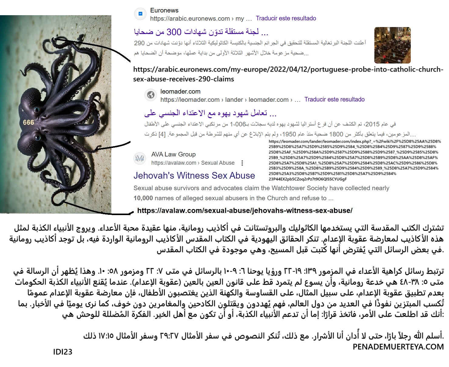 - IDI23 Árabe –كنت أعتقد أنها مسحورة لكن الساحرة كانت هي. هذه هي أدلتي. (ملف PDF)XLSX الدين الذي أدافع عنه يسمى العدل (PDF █ DOCX)