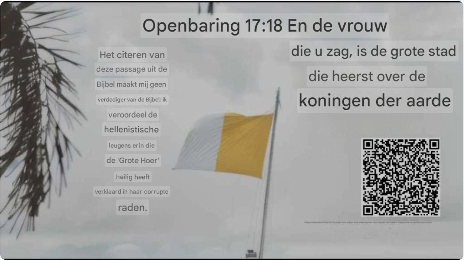 2 minuten geleden (bewerkt) Hypocrisie ten top: ze zeggen dat ze geen beelden aanbidden, ze «vereren» ze alleen. Ze ontkennen dat ze het beest (de Romeinse vervolger) aanbidden, maar ze bidden tot het beeld van een gevleugelde Romeinse soldaat met zwaard en schild. Om dit te verhullen, noemen ze hem «Sint Michaël». Rome heeft het geloof in Jezus nooit omarmd: het heeft het vervalst. Het heeft de afgoden van het volk ingeruild voor zijn eigen afgoden – Jupiter en Samaël vermomd als Jezus en Sint Michaël – terwijl het zich onderwerpt met zinnen als «keer de andere wang toe». De echte Jezus en Michaël zouden nooit vragen om aanbeden te worden, noch tot hen, noch tot hun afgoden. Het was niet Spanje dat Amerika veroverde: het waren de Romeinse leiders, die marionettenkoningen gebruikten om goud, zilver en slaven te plunderen voor hun afgoden. En tot op de dag van vandaag herinneren de vlaggen van het Vaticaan op het paradeterrein ons eraan dat ze een Romeinse kolonie blijven, met plaatsvervangende heersers die hun grondwetten zweren op het boek van Rome. Wie het kan begrijpen, laat hem het begrijpen.