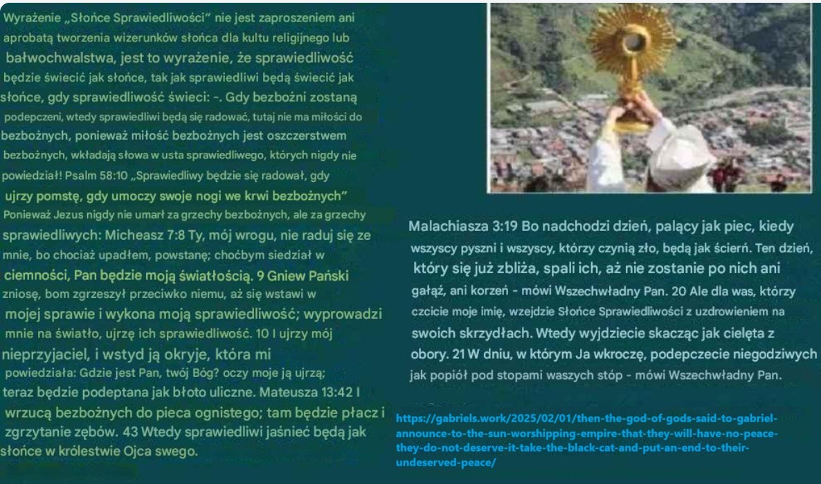 Hipokryzja w pełnej krasie: Mówią, że nie czczą obrazów, że tylko je „wenerują”. Zaprzeczają, że oddają cześć bestii (rzymskiemu prześladowcy), a jednak modlą się do posągu rzymskiego żołnierza ze skrzydłami, mieczem i tarczą. Aby to ukryć, nazywają go „Świętym Michałem”. Rzym nigdy nie przyjął wiary Jezusa: sfałszował ją. Zastąpił bożki narodów własnymi — Jowiszem i Samaelem w przebraniu Jezusa i Świętego Michała — jednocześnie narzucając poddaństwo hasłami typu „nadstaw drugi policzek”. Prawdziwy Jezus i prawdziwy Michał nigdy nie prosiliby, aby się do nich modlono, ani do ich wizerunków. To nie Hiszpania podbiła Amerykę: zrobiła to hierarchia Rzymu, używając królów-marionetek do grabienia złota, srebra i niewolników dla swoich bożków. I aż do dziś flagi Watykanu na placach głównych przypominają, kto wciąż pozostaje kolonią rzymską, z władcami marionetkami, którzy przysięgają swoje konstytucje na księgę Rzymu. Kto ma uszy do słuchania, niech słucha.