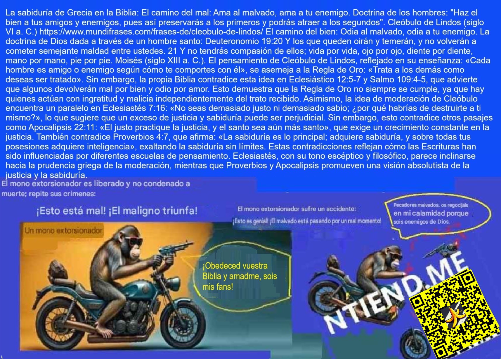 Todos los días la misma estúpida canción, la misma estúpida pirueta con una pelota ensalzada, y las mismas estúpidas soluciones aplicadas.La virgen justa me creerá y se unirá a mí en matrimonio, sin buscar la aprobación de ninguna falsa religión de la serpiente. Serpiente que a cambio de dinero despreció el ideal de los hombres justos y calumnió contra sus verdaderos intereses: Levítico 21:13 Tomará por esposa a una mujer virgen. 14 No tomará viuda, ni repudiada, ni infame, ni ramera, sino tomará de su pueblo una virgen por mujer, 15 para que no profane su descendencia en sus pueblos; porque yo Jehová soy el que los santifico. Serpiente que se vistió de toga para defender la tradición griega, como su consumo de carne de cerdo, amparándose en mensajes falsificados: Palabra de la serpiente: ‘¿Con que Dios te dijo: no comas ese fruto (carne de cerdo)? Nada de lo que Dios hizo es malo, si lo recibes con acción de gracias…’ Serpiente que calumnió contra Dios porque Roma no defendió la palabra de los justos, sino de la serpiente que hizo pasar como tal, diciendo que Dios ama a todos, y que por ello la salvación está en amar al enemigo. Eso es como decir que el veneno deja de ser veneno con palabras, o que el traidor deja de ser tal con buen trato. Sin embargo, el amor de Dios es selectivo: Nahúm 1:2 Jehová es Dios celoso y vengador; Jehová es vengador y lleno de indignación; se venga de sus adversarios, y guarda enojo para sus enemigos. Nahúm 1:7 Jehová es bueno, fortaleza en el día de la angustia; y conoce a los que en él confían. 8 Mas con inundación impetuosa consumirá a sus adversarios, y tinieblas perseguirán a sus enemigos. La divina protección de Dios está reservada solo para los justos: Salmos 5:11 Pero alégrense todos los que en ti confían; Den voces de júbilo para siempre, porque tú los defiendes.