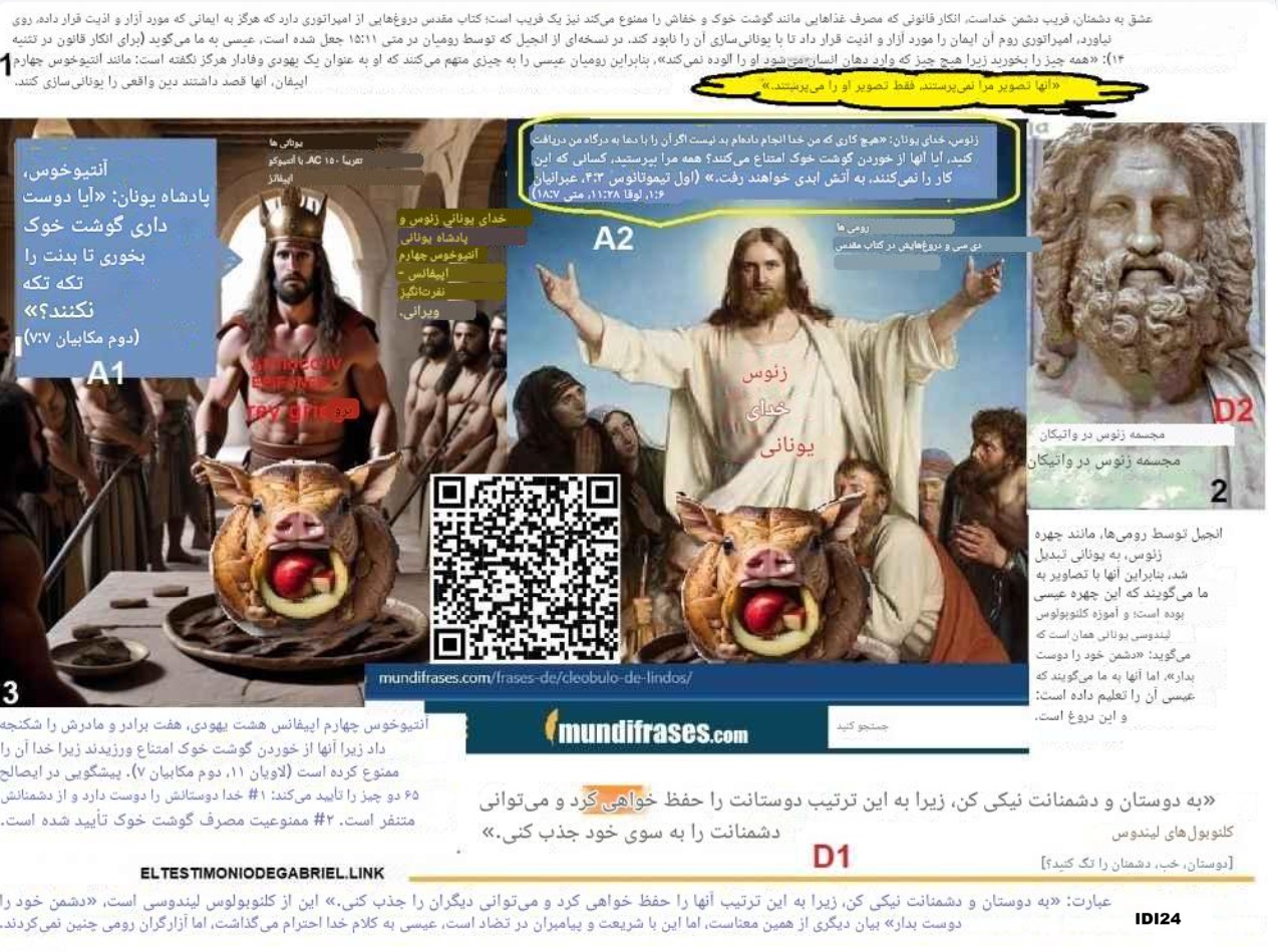 - سکوت مشکوک: اگر بتپرستی بدترین توهین بود، چرا کتاب مقدس هرگز به اینکه عیسی پیامی صریح علیه احترام به تصاویر داده یا به فرمان خروج 20:5 («تو در برابر آنها سجده نخواهی کرد و به آنها خدمت نخواهی کرد») اشاره کرده باشد، اشاره نمیکند؟ گویی امپراتوری روم عمداً پیامهای او را حذف یا تغییر داده و پیامهای دیگری را برای راحتی اعتقادی ساخته است.