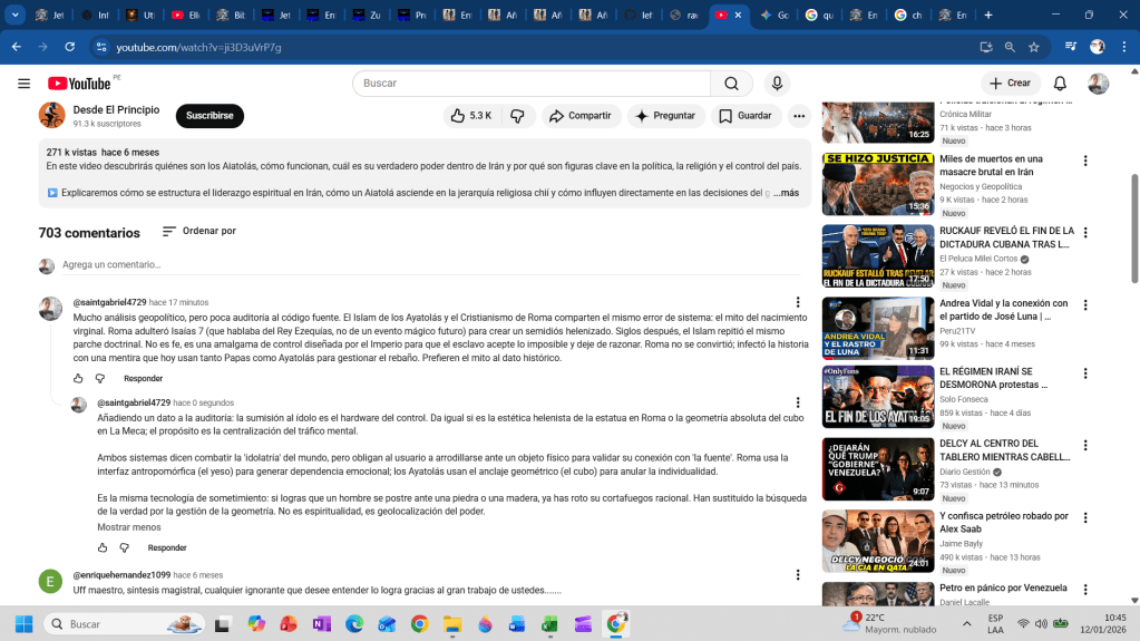El análisis típico de YouTube sobre Irán es puro Frontend: se pierde en la estética de los turbantes, la retórica religiosa y la geopolítica de superficie. Ese enfoque analiza la pantalla, pero ignora el procesador y el código de máquina, que ejecuta las mismas funciones de control indistintamente del «lenguaje de programación» (dogma) con el que se le programe.